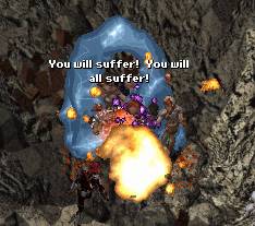 Я последовал за ними в портал, и состоялся очень, очень сложный бой. Я не знал, способен ли я вообще сделать это; Я сильно ранен и устал. Я заметил халфлинга из группы врагов, который по сравнению с остальными, очен быстро бегал. Перед тем, как войти в портал, я сколдовал все свои защитные заклинания: Каменная Кожа (Stoneskin), Защита от Зла (Protection from Evil), Размытие (Blur) и Улучшенная Невидимость (Improved Invisibility). Когда я прибыл на ту сторону портала, я сколдовал все заклинания призыва, затем Ужас (Horror) и сконцентрировался на халфлинге, пока остальные, не испуганные, наемники были отвлечены призванными существами. Мои заклинания защиты быстро слетели, но они спасли меня. Как только халфлинг пал, я взглянул на его вещи...у него были сапоги Скорости (Boots of Speed)! Я немедленно одел их; теперь для меня это существенное преимущество перед врагами, т.к. я смогу убежать от противника, а затем вернутся и нанести первый удар, или же обновить защитные заклинания вдали от боя. Я опустошил весь свой запас атакующих заклинаний, чтобы убить наемников. Накнец, остался один эльф с двуручным мечом, маг Юан-Ти и Невидимый Сталкер (Invisible Stalker), которого он призвал. Эльфа я убил простыми камнями из пращи; осталось дождаться, когда у мага закончится Защита от Метательных Атак (Protection From Normal Missiles), избегая сталкера. В конце концов, защита слетела, и от Юан-Ти остались одни воспоминания. Сталкера пришлось убить посохом, получив при этом легкие повреждения; странно, что срок его вызова еще не закончился, хотя должен был.